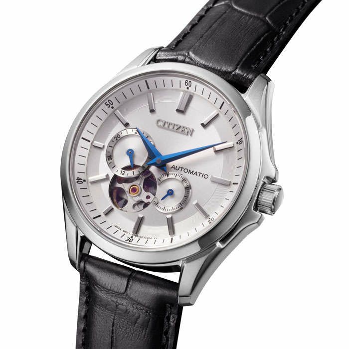 オープンハート文字板が人気のメカニカルモデルから、クラシカルな表情がきわだつ革バンド仕様が登場。