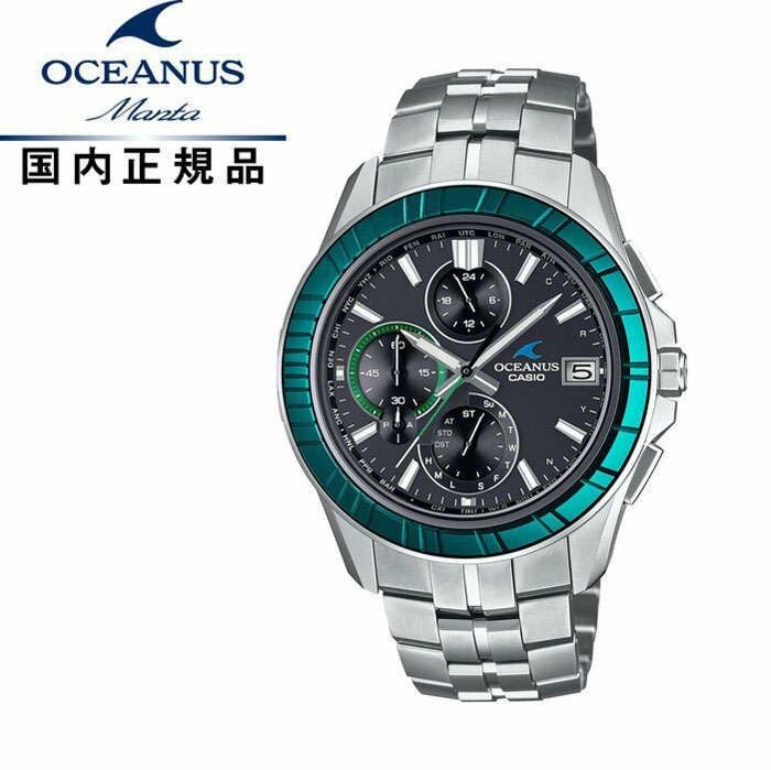 OCEANUS20周年記念 彩り豊かな海を進む情景を表現した限定モデル OCEANUS20周年を記念し、OCEANUSが2004年の誕生 から紡いできた「青」の物語を、この先も挑戦し続ける意思と、彩 り豊かな海を進む情景になぞらえた数量限定モデルです。 上質な仕上げと薄く美しいフォルムを追求しているOCEANUS Manta(オシアナス マンタ)ライン。ブランド20周年を記念した OCW-S7000SG-1AJRは、カッティングラインが層をなす美し いベゼル上のサファイアガラスが特徴で、江戸切子の職人が一つ ひとつ手作業でカットを施しています。 美しいカッティングラインは、海原を力強く進む船が作る波の筋「航 跡」を表現。硬いサファイアガラスに幅、深さを均一にしたカット を施す江戸切子には、高い技量が求められます。一つひとつ手 作業で丁寧に削り上げ、江戸切子にしか表現できない、煌めきと シャープな美しさが魅力です。 江戸切子職人の手で一つひとつ丹念に仕上げたカッティングライン ベゼル上のカッティングラインは、江戸切子職人の堀口徹氏が監 修し、サファイアガラス両面に切り目を入れることで奥行きを生み、 9時方向へ進む船の航跡をイメージしてデザインしています。 また、美しい海をイメージしたグリーンカラーは、光の加減で青みを 帯び本物の海を思わせます。 [三代秀石 堀口徹] 1976年、東京都生まれ。祖父が江戸切子職人であるという環 境のもと、二代目秀石(須田富雄、江東区無形文化財)に江戸 切子を師事。2008年、三代秀石として株式会社堀口切子を創 業。日本の伝統工芸士(江戸切子)認定。伝統的な手法や様 式を継承しながらも、斬新で現代的なものづくりを信条とする。 OCEANUS20周年を記念した数量限定モデル OCEANUS20周年を記念する本限定モデルは、ベゼル上のサ ファイアガラスに施した特別なカッティングラインを引き立てる落ち 着きのあるダイアルに、グリーンの差し色を秒針と9時位置のサブ ダイアルに配置しました。限定モデルならではの特別仕様として、 専用のボックスが付き、裏蓋には、限定モデルの証として“20th Anniversary”の文字が記されています。 チタンの美しさを引き出すこだわりの仕上げ ケースとバンドにチタンカーバイト処理を施し、耐摩耗性と発色を向 上。ザラツ研磨によって磨き上げられた歪みのない平滑な鏡面と、 落ち着いた趣を持つヘアライン面のコントラストによって美しい外 装を実現しています。