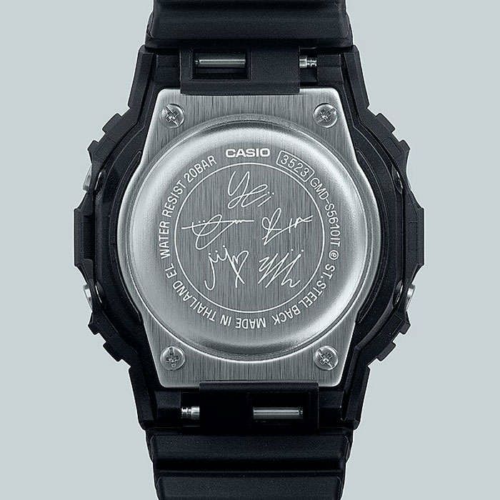 フェイス上部に★マークをミラーインクを使って印刷し、世界を舞台に自分らしく輝く人気グループのイメージをカタチにしました。裏蓋にはメンバーのサインを刻印し、ITZYをいつも身近に感じられるコラボレーションモデルならではの特別仕様になっています。