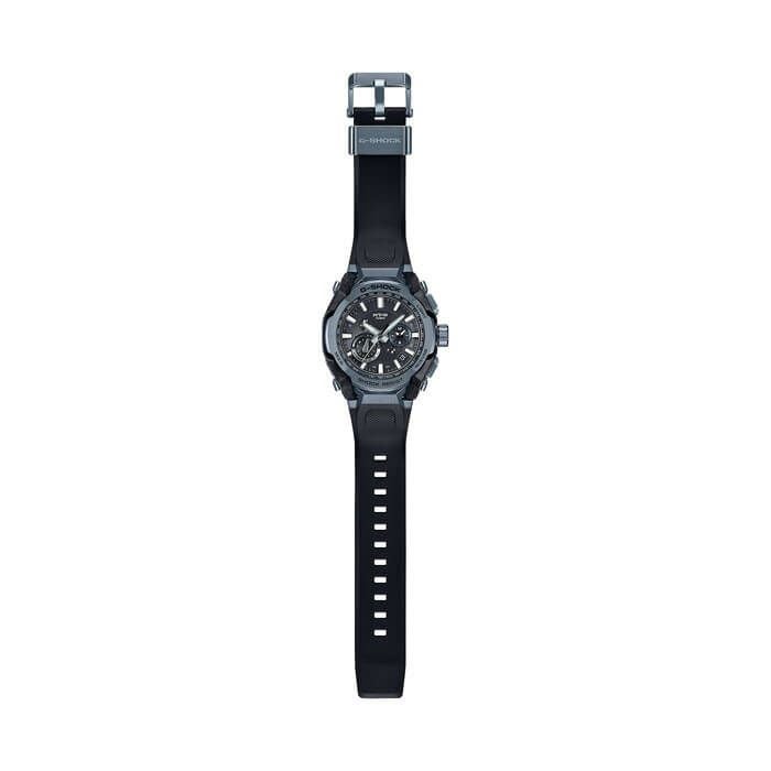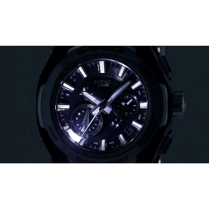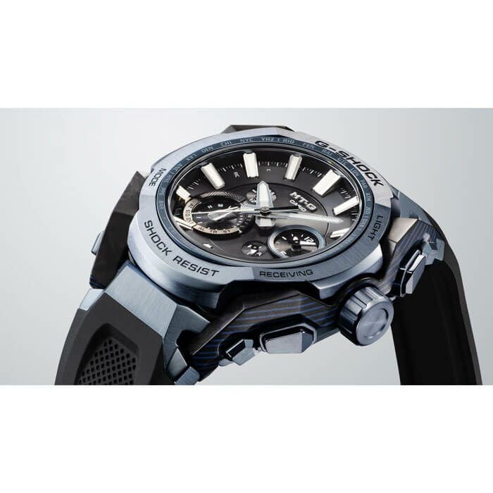 G-SHOCKの起源である樹脂素材とメタル素材を融合して、革新的な構造美を追求するMT-Gシリーズ。MTG-B4000は、蓄積された耐衝撃データを活用したAIによって開発された新しいデュアルコアガード構造と、カーボンとステンレススチールの異素材融合フレームを採用しています。これにより、強さと美しさを兼ね備えた革新的なデザインが実現しました。AIと人の共創により、素材、構造、造形が有機的に結合し、独創的な機能美を追求しています。AIを活用した開発プロセスでは、デザイナーのベース案の解析・シミュレーションの最適化をAIが行い、これを相互補完的に繰り返すことで機能性と美しさを両立させた形状を実現しました。カーボン積層フレームは、シート状のカーボンとグラスファイバーを積層した母材を立体状に削り出し、複雑造形のフレームを成形。ベゼルのステンレススチールパーツは内側と外側で2体ベゼルを採用。ヘアライン仕上げとミラー仕上げで部位ごとに磨き分け、美しく仕上げました。耐衝撃構造、耐遠心重力性能、耐振動構造をもつTRIPLE G RESISTも実現。裏蓋は、粉末状の金属を射出成形するMIM(メタルインジェクションモールディング)成形により立体的に成形され、ケースを保護しています。MTG-B4000B-1A2には、ベゼルなどのステンレススチールパーツに新開発のブルーグレーのIP加工を施しています。また、透明度の高いサファイアガラスを採用し、カシオ山形工場の微細加工技術による繊細なデザインが施されたダイアルなど、細部にまでこだわりました。機能面ではBluetoothR 通信機能により専用アプリ「CASIO WATCHES」と接続し時刻情報を取得。マルチバンド6やタフソーラー、高輝度なLEDライトも搭載し、実用的な機能を備えています。