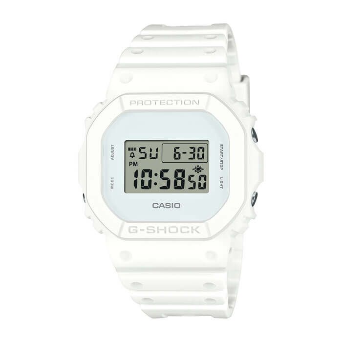 タフネスを追求し進化を続けるG-SHOCKから、細部のパーツまですべてホワイトのワントーンで仕上げたDW-5600WW-7JFのご紹介です。ベースモデルはDW-5600を採用。液晶の色にもこだわり、ケース、ベゼル、バンド、ガラスの各パーツに至るまでホワイトのワントーンで仕上げました。ストリートファッションにも最適なカジュアルでスタイリングのアクセントとして活用しやすいモデルです。