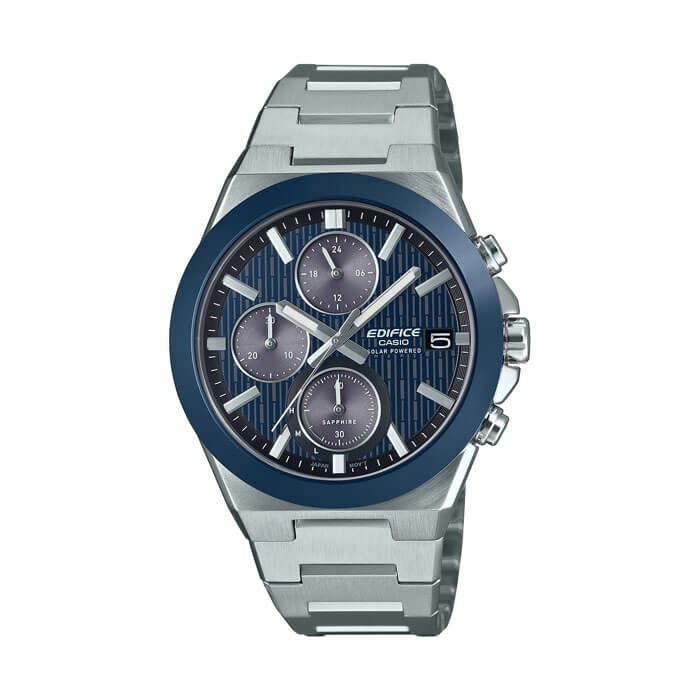 EDIFICEの新たな魅力を体現するこの腕時計は、モータースポーツファンや車好きの方に最適です。初採用のセラミックベゼルは、高級スポーツカーのような美しい艶感を持ち、ステンレススチールよりも傷に強く、その美しさを長期間保ちます。また、風防にはサファイアガラスを使用し、視認性と耐傷性を両立。ソーラーパワーによる長寿命駆動や、ストップウオッチ、10気圧防水機能も備えています。フラットなステンレススチールケースとバンドは、ヘアライン仕上げと鏡面仕上げで緻密にデザインされ、文字板には洗練されたパターンが施されています。40.9mmの小ぶりなケースサイズが、スタイリッシュかつ機能的なデザインを実現しています。