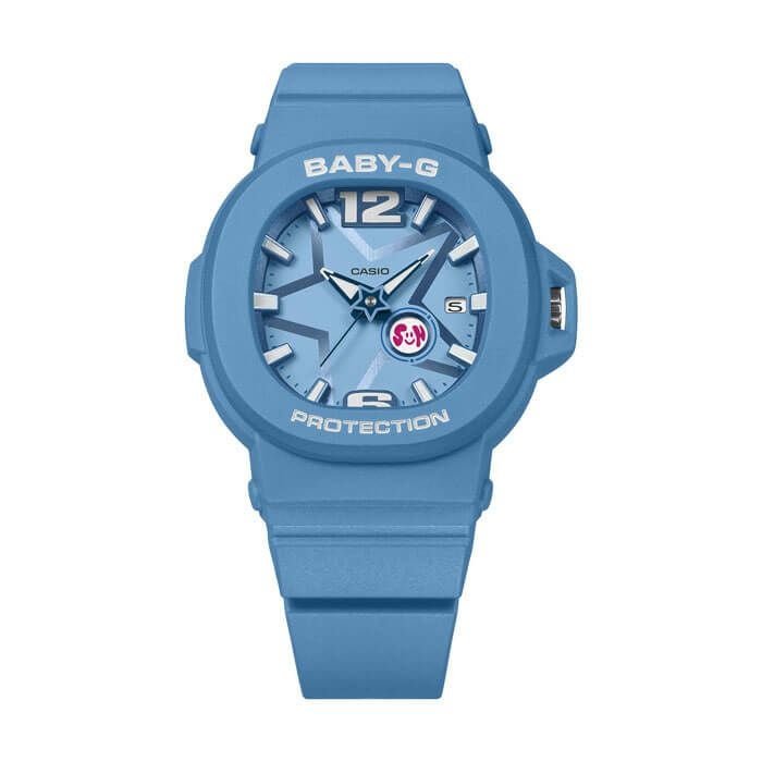アクティブな女性に向けた耐衝撃・カジュアルウオッチBABY-Gから、文字板に煌めく星をあしらったY3Kスタイルのウオッチです。メタリックカラーの星を大胆にレイアウトしたダイアルと、メタリック仕上げを施した立体インデックスが、フューチャリスティックな世界観を際立たせるデザイン。針軸には星型のモチーフをあしらい、BABY-Gらしい遊び心もプラスしています。曜日表示は日替わりでデザインが変わり、ポップなフォントとカラーで、フェイスに毎日の楽しさを添えます。耐衝撃構造や10気圧防水機能など、日常のアクティブシーンに欠かせない頼れる機能も充実。日常生活はもちろん、スポーツやレジャーシーンも安心。アクティブな毎日を応援します。