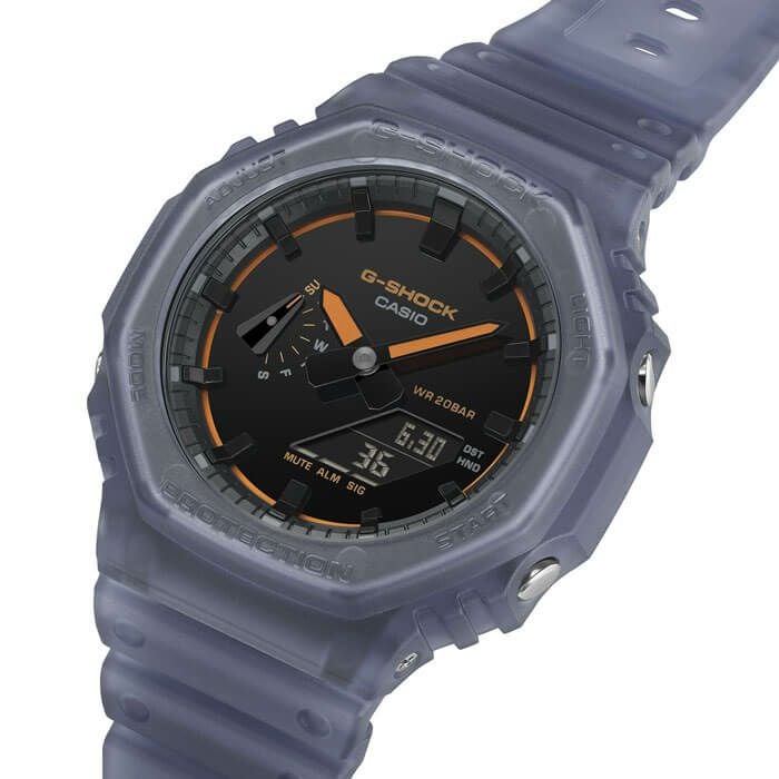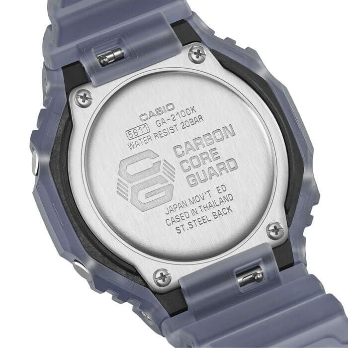 ザーライトの煌めきを演出。ベゼルとバンドにはマットな半透明素材を用い、漂う霧のような幻想的な質感を実現しています。本製品は、G-SHOCKならではの耐衝撃性能と先進のデザインを融合させ、新たな表現を追求したテーマモデルです。