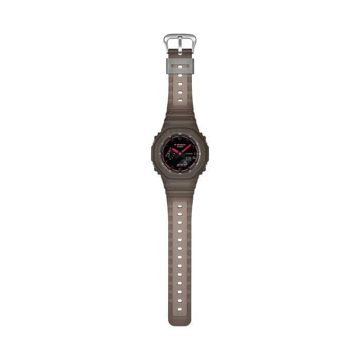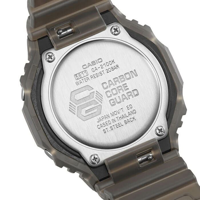 ザーライトの煌めきを演出。ベゼルとバンドにはマットな半透明素材を用い、漂う霧のような幻想的な質感を実現しています。本製品は、G-SHOCKならではの耐衝撃性能と先進のデザインを融合させ、新たな表現を追求したテーマモデルです。