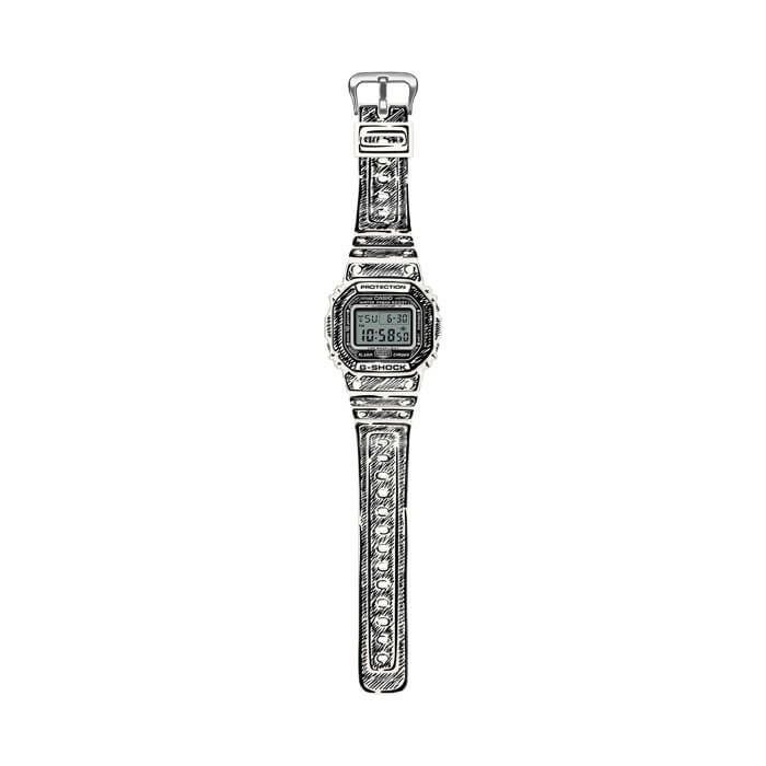 1983年の誕生以来、様々なカルチャーと融合し進化を続けるG-SHOCKから、 Joshua Vides(ジョシュア・ヴィーダス)とのコラボレーションモデルが登場します。ラインアップは、フロントボタンと三つ目液晶が特徴の「DW-6900」と、スクエアフォルムが人気の「DW-5600」の2モデル。Joshua Videsならではのモノトーンを基調としたコミックタッチのグラフィックを、フェイス部からベゼル、バンドまで時計全体に配しました。ホワイトベースのDW-5600JVはブラックのグラフィックと光沢仕上げにより、強いコントラストと存在感を演出します。Joshuaの手描き風フェイスデザインが特徴で、バックライト点灯時には彼のトレードマーク「Cone」が浮かび上がります。特製パッケージ付きのスペシャルモデルです。