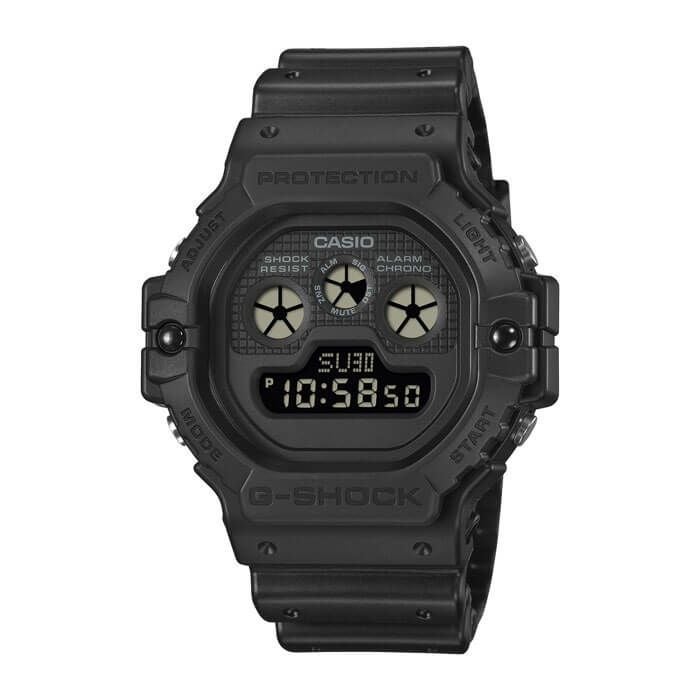 究極のタフネスを追求し歴史を積み重ねてきたG-SHOCKから、1990年代に人気を博したクラシックG-SHOCKがマットな質感のオールブラックモデルとしてラインアップ。ベースモデルにはリバイバルを果たしたDW-5900を採用。ストリートからモード、スポーツシーンまで様々なスタイルに合う汎用性の高いモデルです。また、基本スペックであるストップウオッチ、タイマーに加え、バックライトには高輝度なLEDバックライト、電池寿命約10年のロングライフスペックなど実用的な機能を備えています。