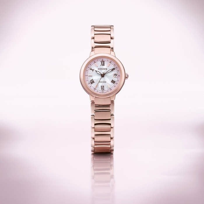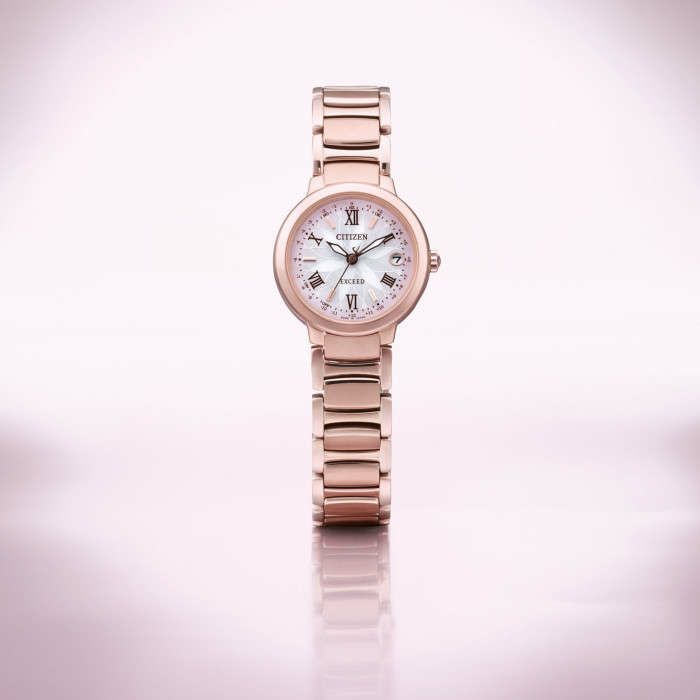 確かな品質と洗練されたデザインによって唯一の価値を生み出す。シチズン エクシードは、まさに「本物」を求める大人にふさわしい。 ハッピーフライトに女性の肌を明るく美しくみせる色、サクラピンク*のモデルが登場。艶やかな白蝶貝文字盤は、恋占いでも有名な春に咲くマーガレットをモチーフにしたパターンをデザイン。繊細な模様が華やかさを演出。マーガレットは、ギリシャ神話から女性が求める最高の幸せ「真実の愛」が花言葉。洗練されたデザインはシーンを選ばれる