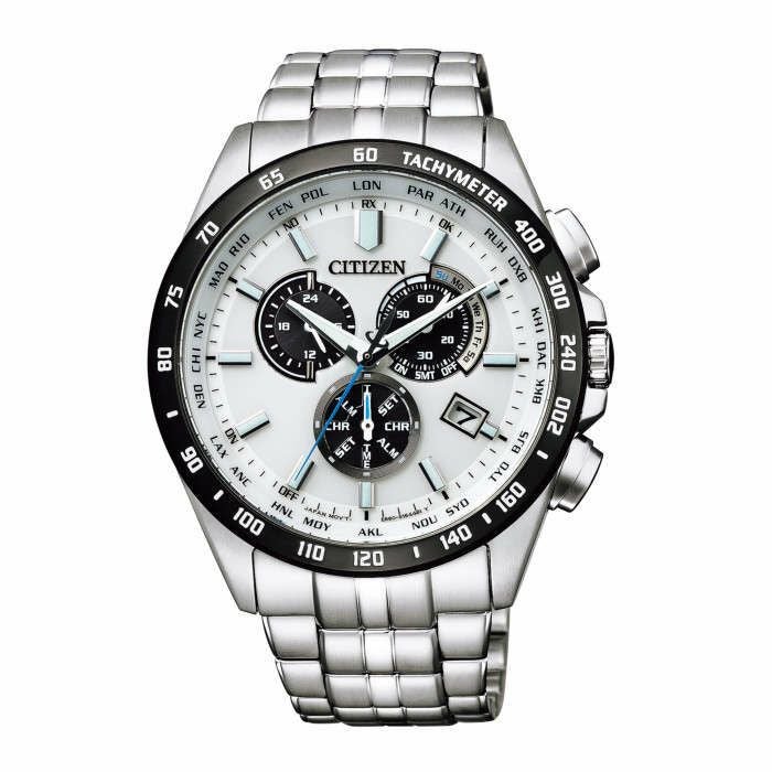 シチズン コレクション エコ・ドライブ電波時計クロノグラフモデルの新製品です。世界の時差を表示するワールドタイム機能を搭載、従来の製品よりもバージョンアップした商品です。クロノグラフ、日付表示などを搭載した高機能モデル、ビジネスからカジュアルシーンまで、様々なシーンに調和するデザインとなっております。
