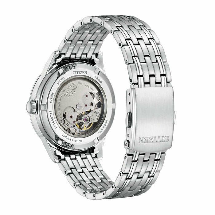 ・裏ぶたは、回転する錘(おもり)とメカの動きを楽しめるシースルーバック。