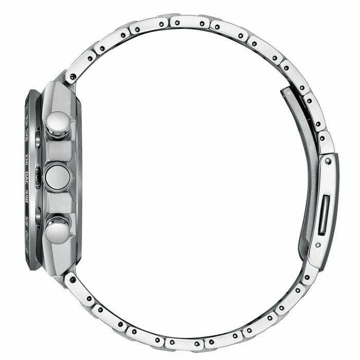 エッジの効いたスポーティな表情がきわだつフルフローケースのACT Lineに、クロノグラフを搭載した光発電エコ・ドライブ電波時計が登場。