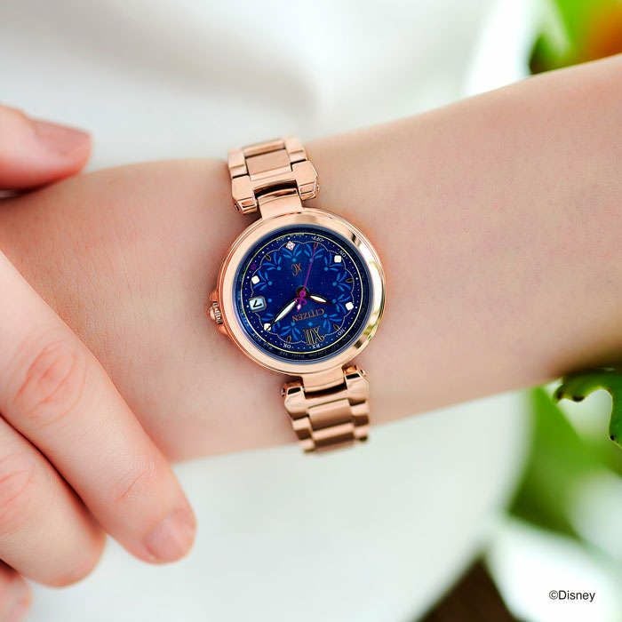・文字板は、アナのブルーのスカートと装飾をイメージしたデザイン。