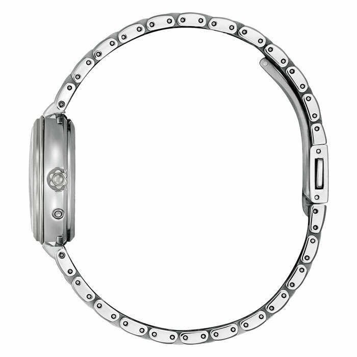 ダイヤモンドの輝きと多列バンドを用いたブレスレットデザインが、上品でエレガントな印象を与えるサン&ムーン搭載モデルです。