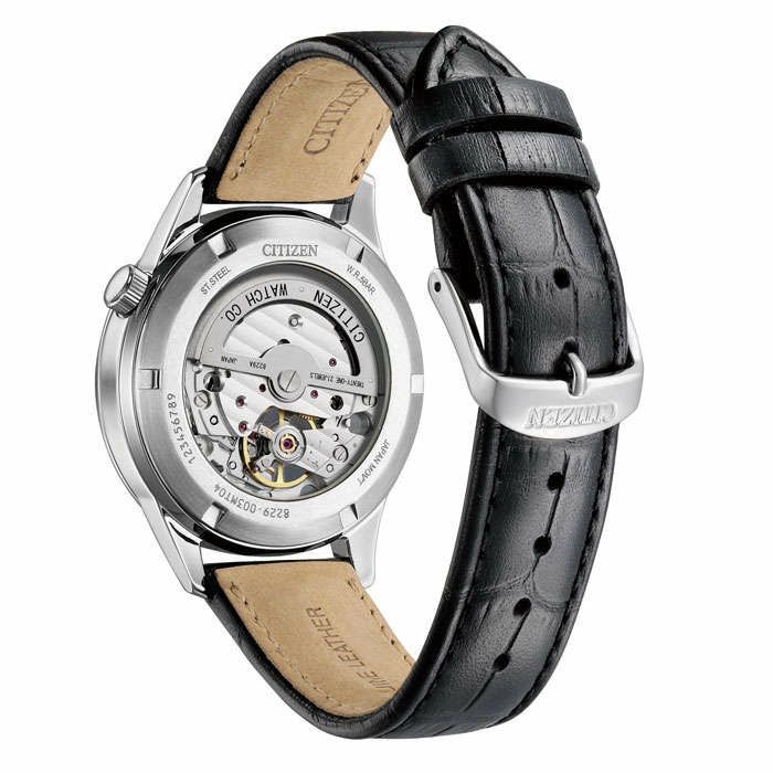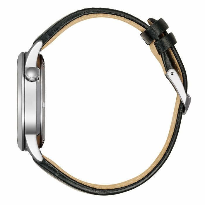 ・クラシカルモダンなデザインのメカニカルウオッチで、文字板6時の位置の窓からメカニカルウオッチ