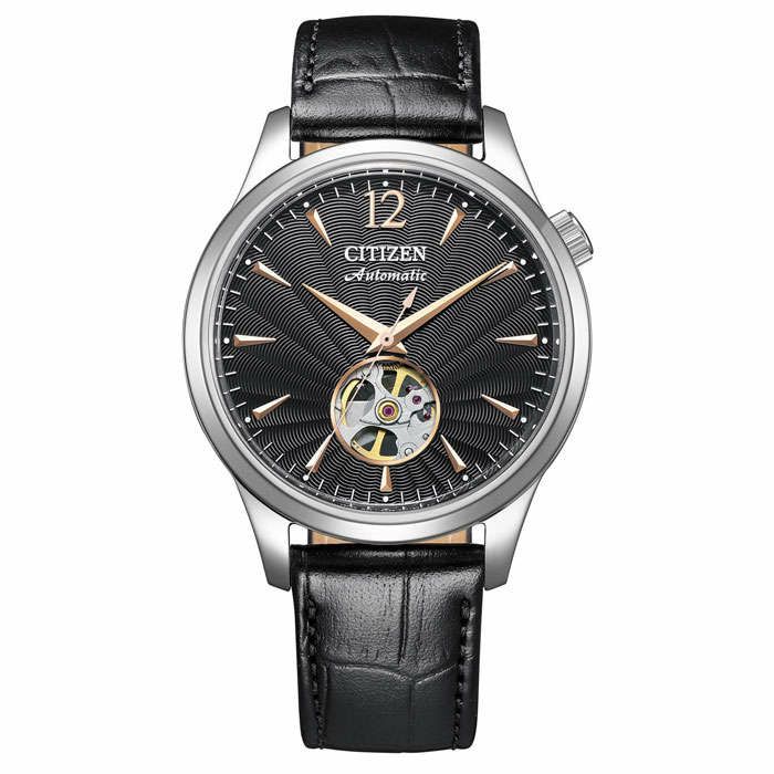 の心臓部であるテンプの繊細な動きを堪能できるオープンハート仕様です。