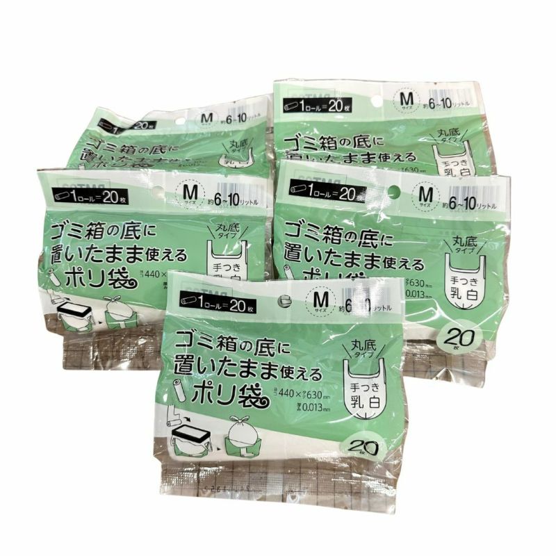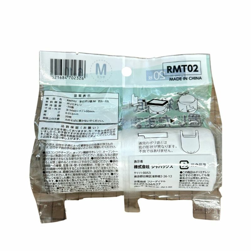 ●RMT02 ゴミ箱の底に置いたまま使えるポリ袋 手付き Mサイズ(約6L~10L) 乳白 20枚
