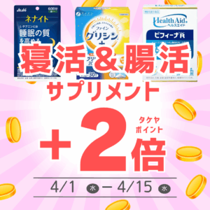 4.1~4.15 寝活&腸活サプリご購入でポイント+2倍 ■期間:2026.04.01(水)~04.15(水)■開催:TAKEYA1-3F 医薬品売場期間限定で腸内環境サプリがタケヤポイント+2倍に!!4月は入学、就職な […]