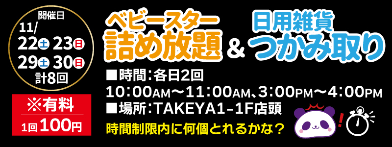 場所:TAKEYA1-1F店頭 ※雨天中止