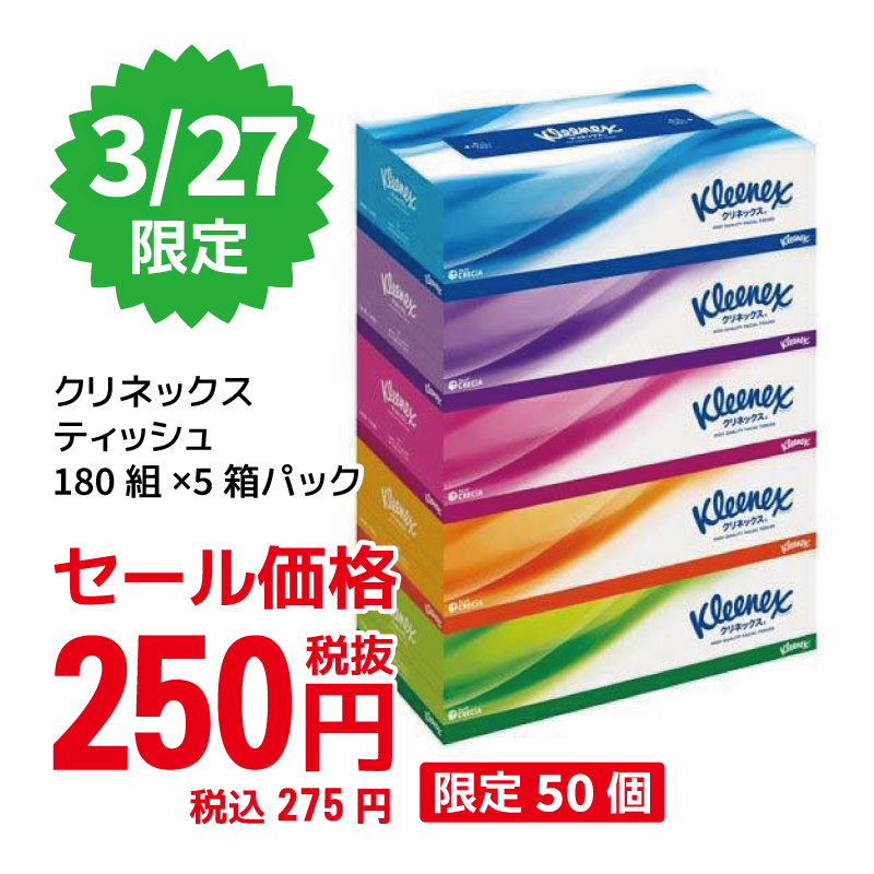 クリネックス ティッシュ180組×5箱パック