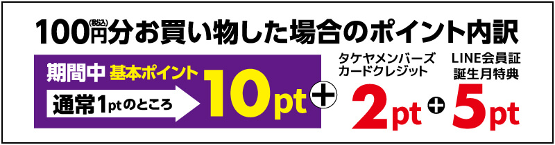 さらに、タケヤメンバーズクレジットや誕生月特典がつくと最大17倍!