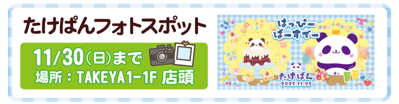 11/16(日)~30(日) SNS連動たけぱんグッズプレゼントキャンペーン