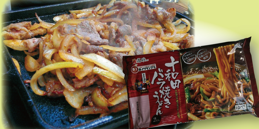 リンゴ・にんにくを使った醤油ベースの甘辛タレとうどんのセットです。