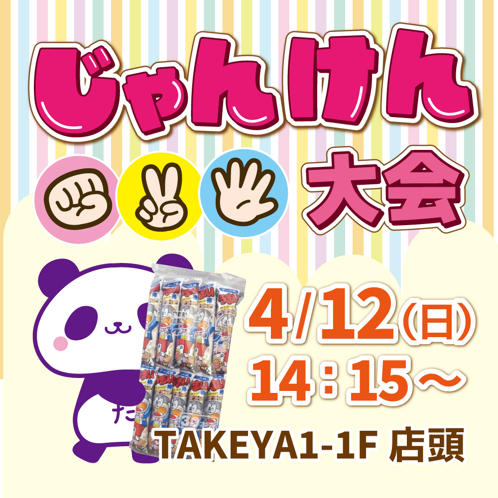 じゃんけん大会には「たけぱん」も遊びにきてくれます♪TAKEYA1に登場するので詳しくはスケジュールをチェック!