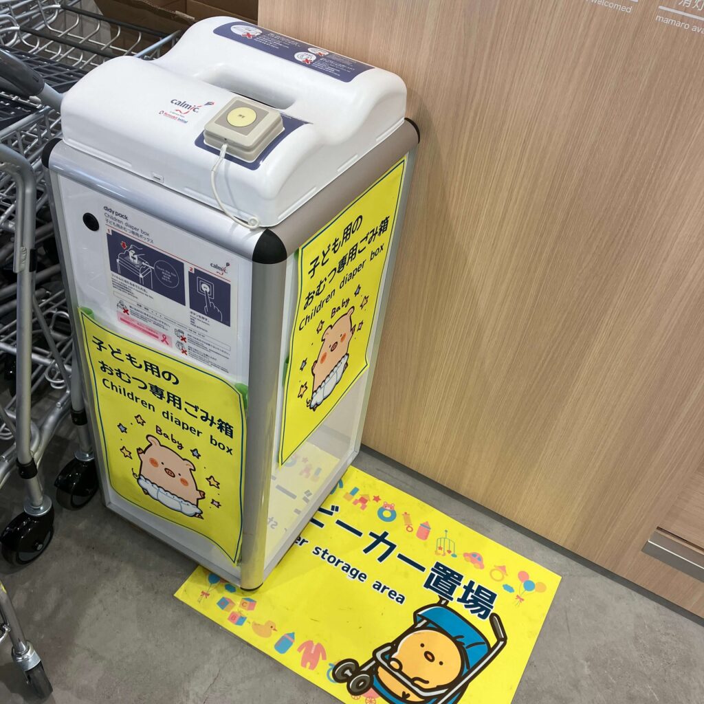 「mamaro」の横におむつ専用のごみ箱がありますので、ぜひご利用ください。