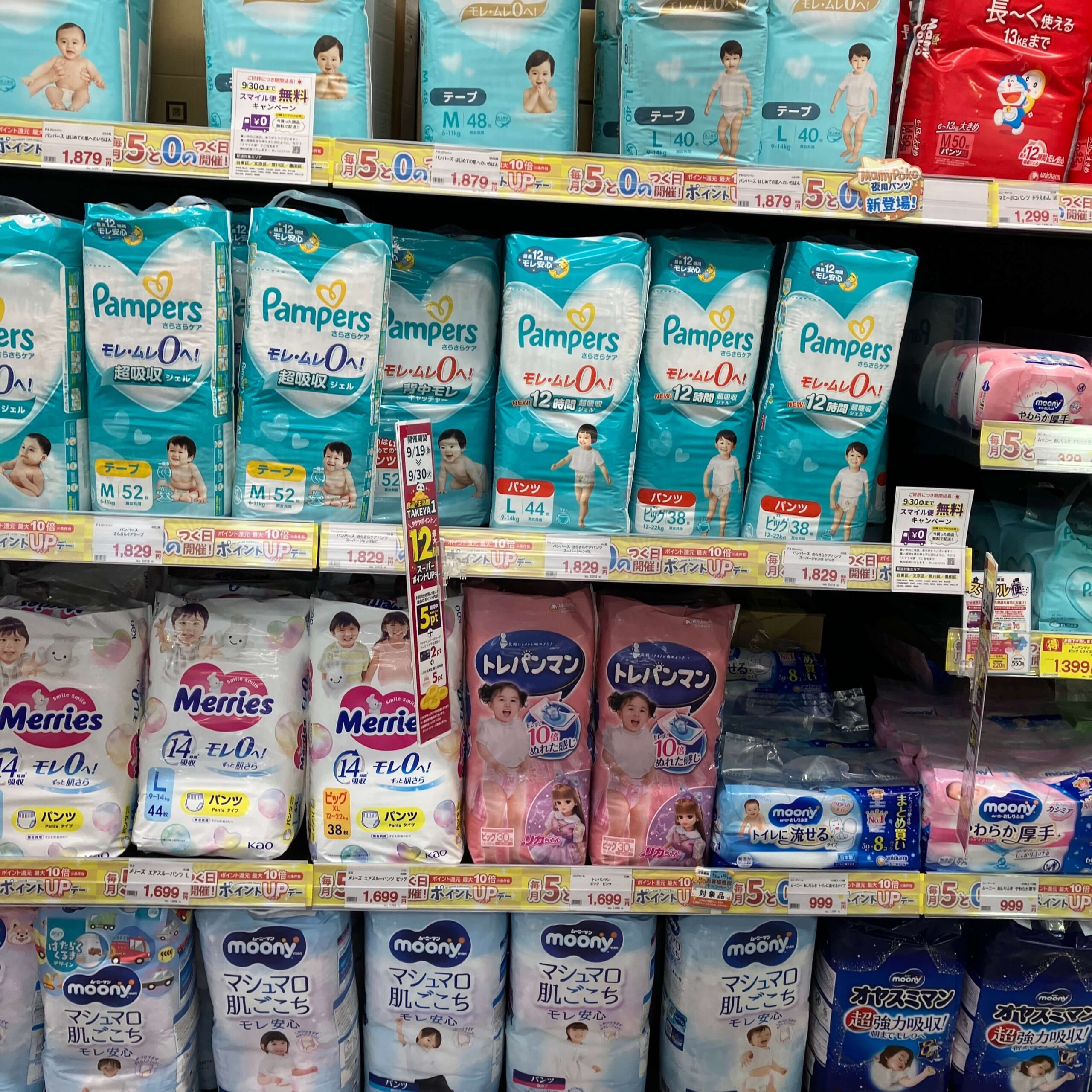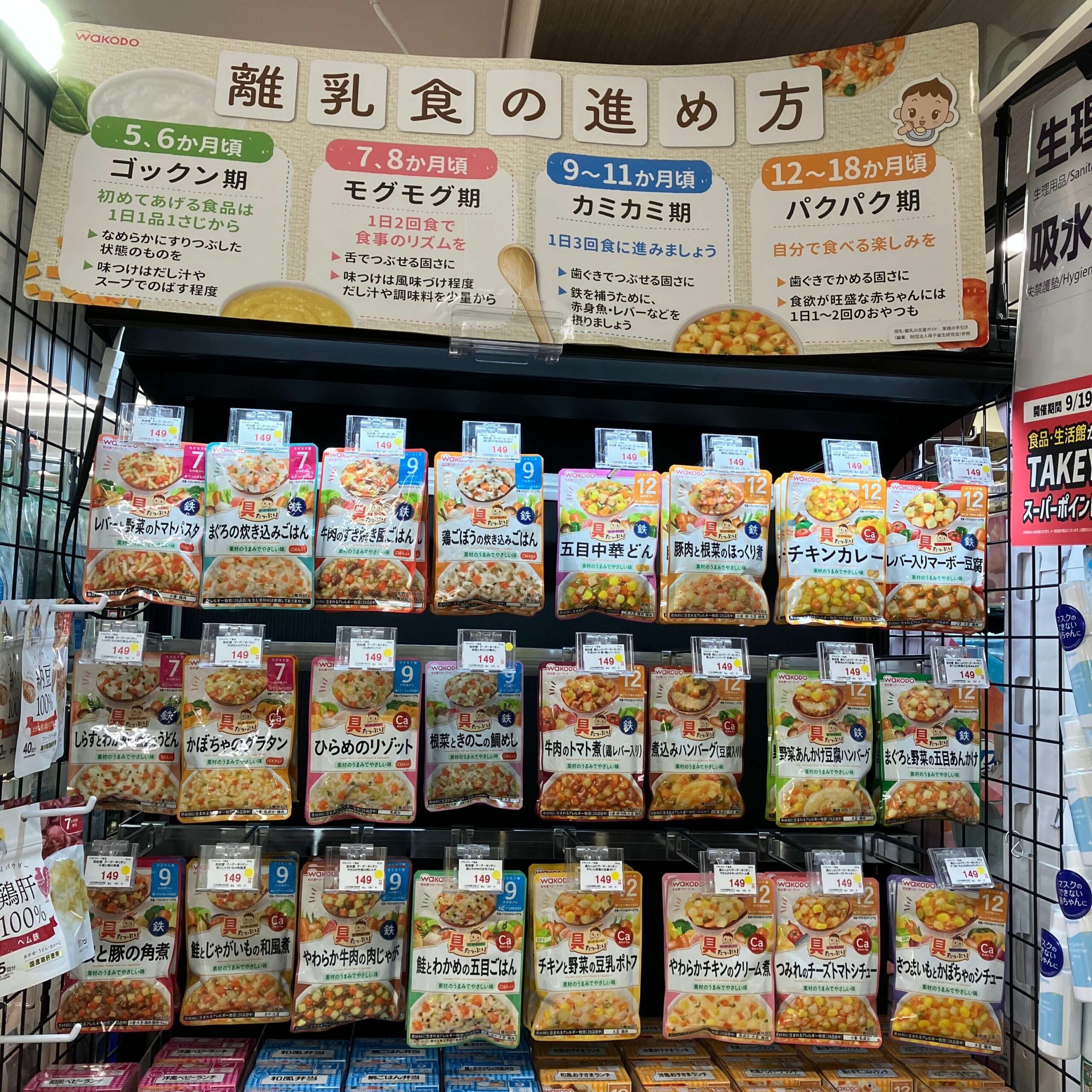 TAKEYA1-2F ベビー用品売場では、離乳食やおむつ、ベビーケア用品を多数取り揃えております。
