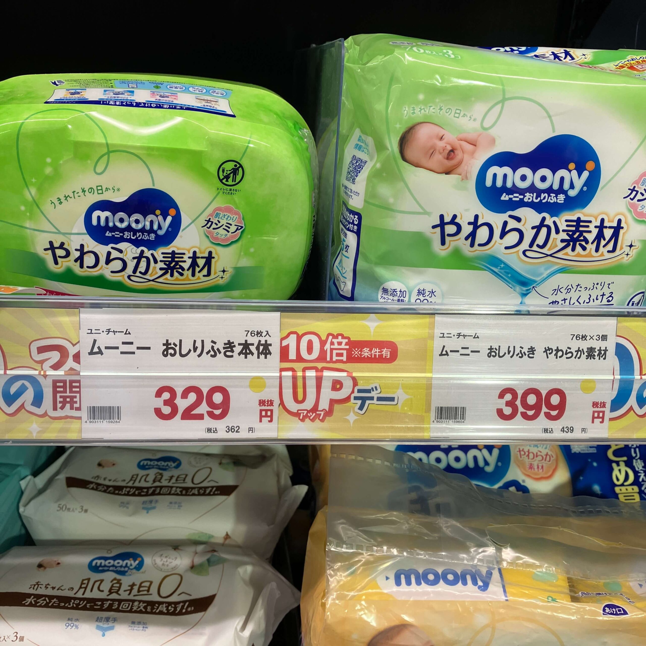 デリケートな赤ちゃんの肌にやさしいスキンケア用品や、やわらか素材のおしりふき、おむつなど、各種、お取り扱いしてます♪