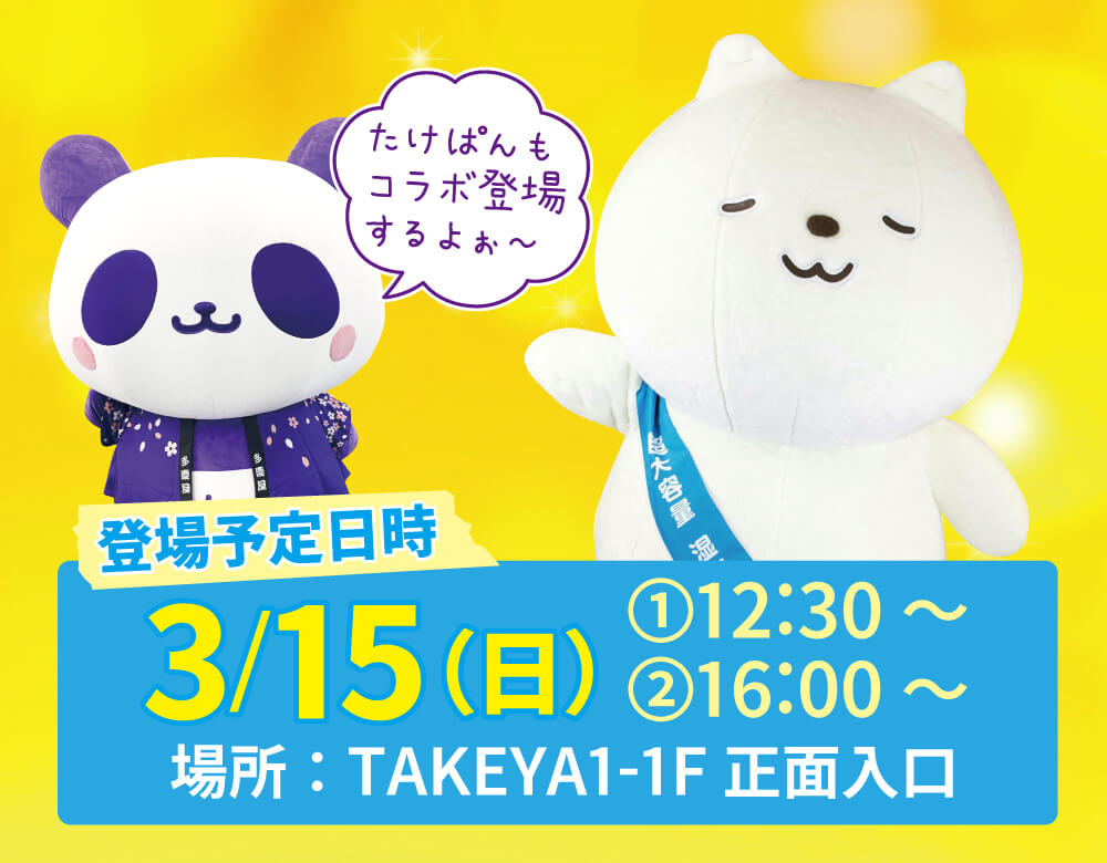 ・登場場所:TAKEYA1-1F正面入口 登場時間:①12:30~ ②16:00~