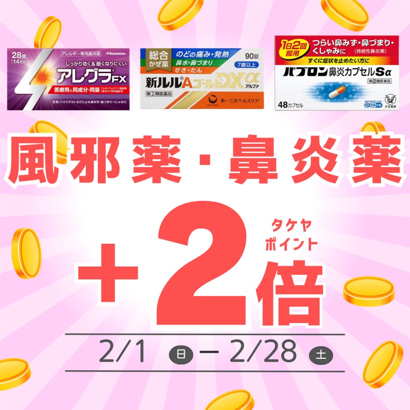 2/1~2/28限定 「風邪薬・鼻炎薬」タケヤポイント+2倍