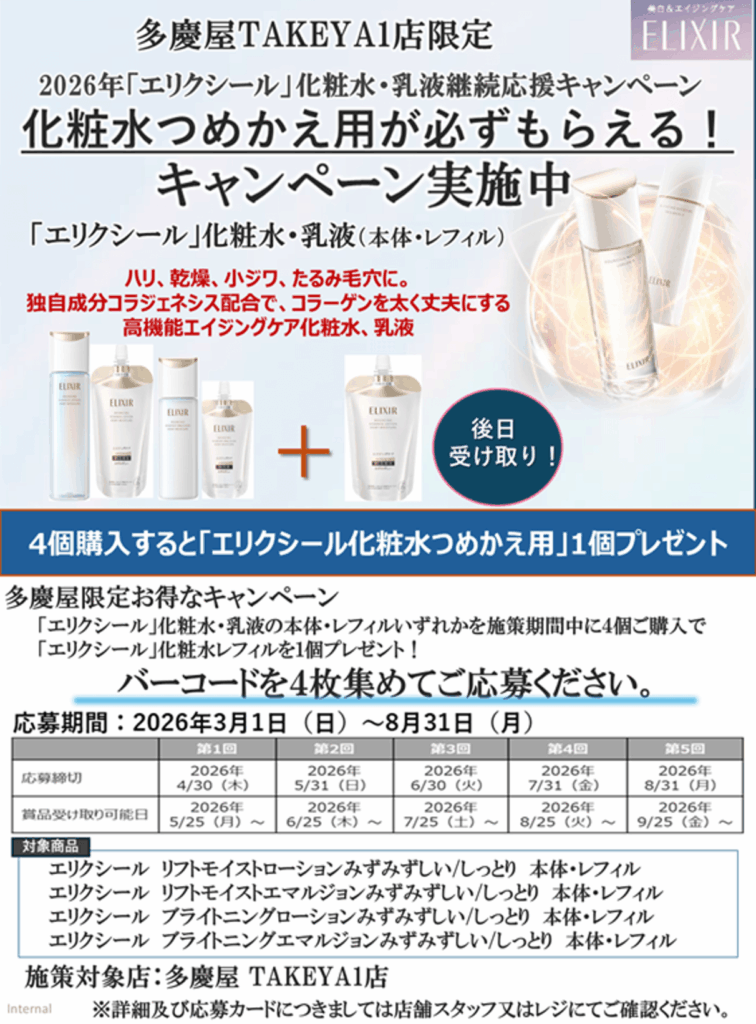 数量限定販売(エリクシール化粧水18mL付き)