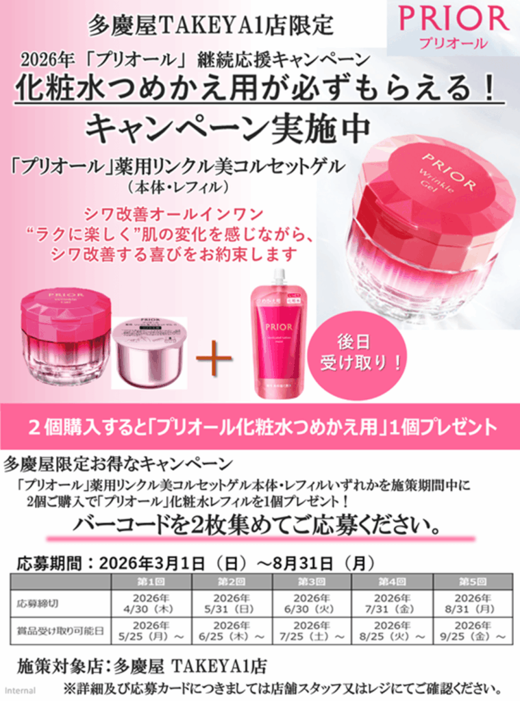TAKEYA1-3F限定 資生堂化粧品継続応援キャンペーン開催!