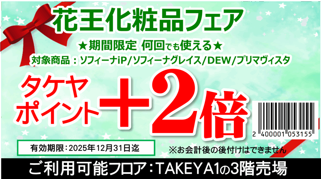 ■開催フロア:TAKEYA1-3F 化粧品売場 花王コーナー