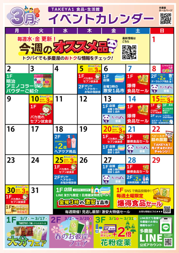 3月の食品・日用雑貨イベントをお知らせ!