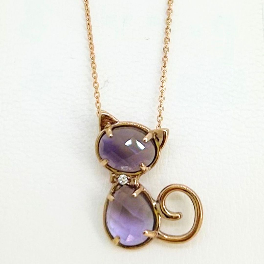 高貴なパープルの光を宿した、多面カットのアメジストで猫のしなやかなライン表現しています。 甘くなりがちなアニマルモチーフを、宝石の美しさで「大人の洗練されたジュエリー」へと昇華させた逸品です。