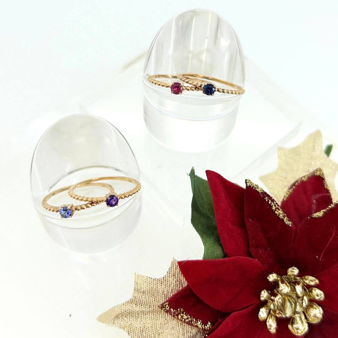 アメジスト、ムーンストーン、トパーズ、オパールなど、温かみのあるカラーストーンはこの冬にピッタリ!石によって異なる色の輝きを楽しめます。特別感のあるプレゼントにも最適で、贈られた方の日常をカラフルに彩ってくれるはず。