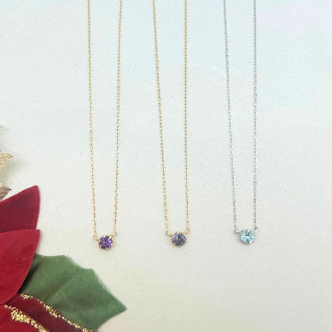 デコルテに宿る、たった一つの輝き。カラーストーンの持つ美しい色味が、ホリデーの夜も、何気ない日常も、そっと特別なものに変えてくれます。流行に左右されないデザインで、永遠に愛せるお守りジュエリーです。