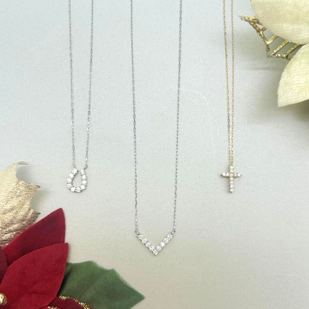 胸元で静かにきらめくダイヤモンドの存在感に心癒やされます。ホリデーの静謐な雰囲気にも、新年の決意にも寄り添う普遍的なデザイン。オフィスにも使いやすく毎日つけたくなる美しい輝きをどうぞ。