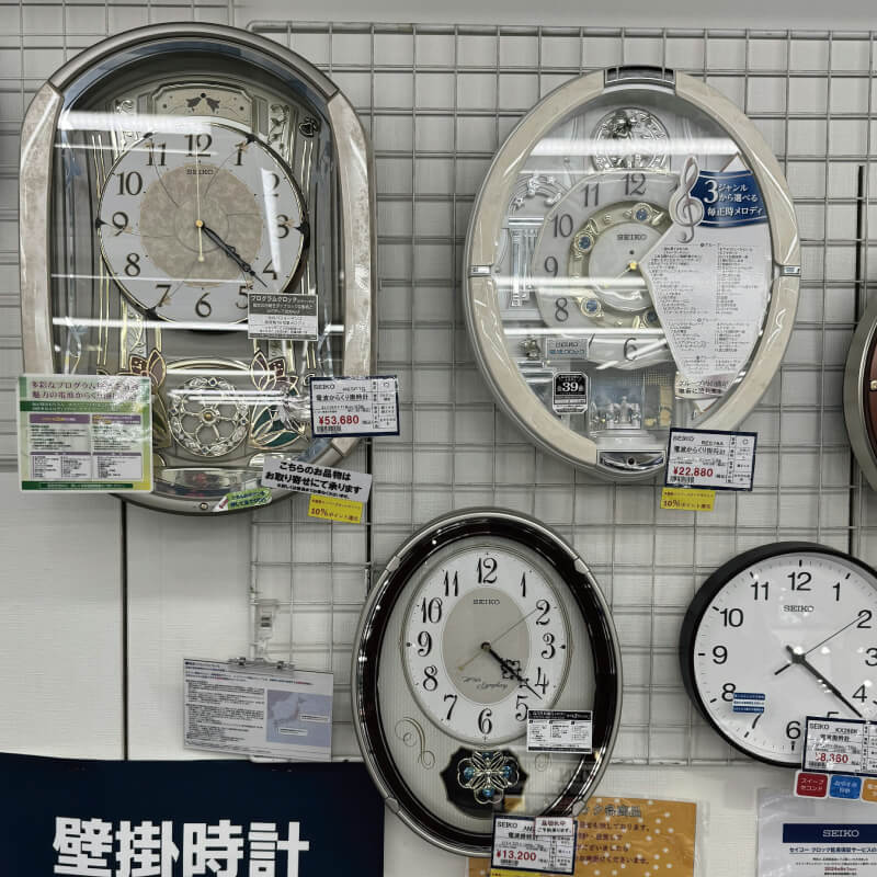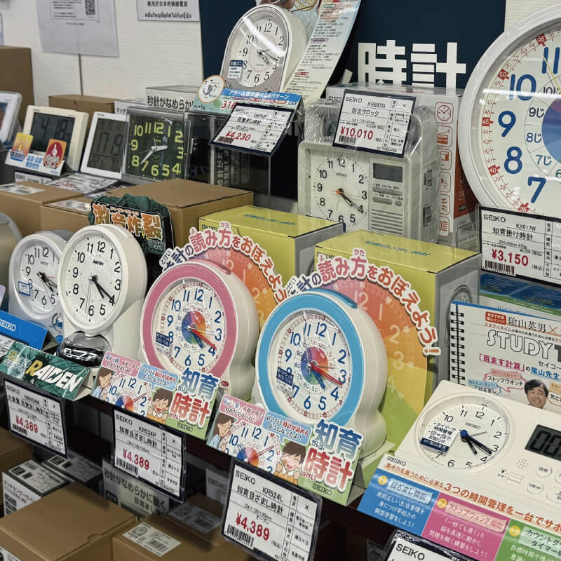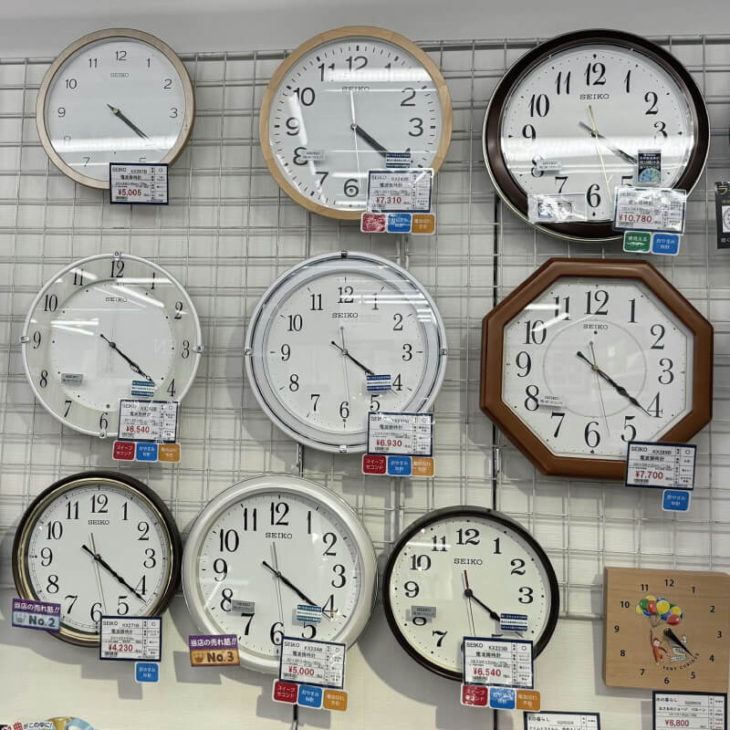 電波掛時計、非電波掛時計など、お使い頂く場所などに合わせたサイズ・機能を持った商品をお取り扱い致しております。