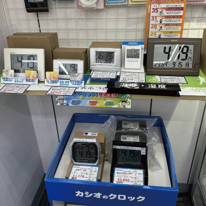 温度・湿度計や温度・湿度計機能の付いた目覚し・置き掛け兼用時計も人気です!