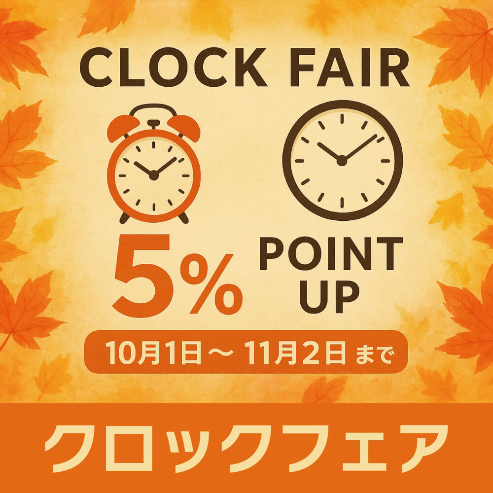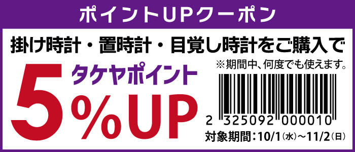 掛け時計、置時計、目覚し時計をご購入時、こちら画面のクーポンをスタッフにお見せください。
