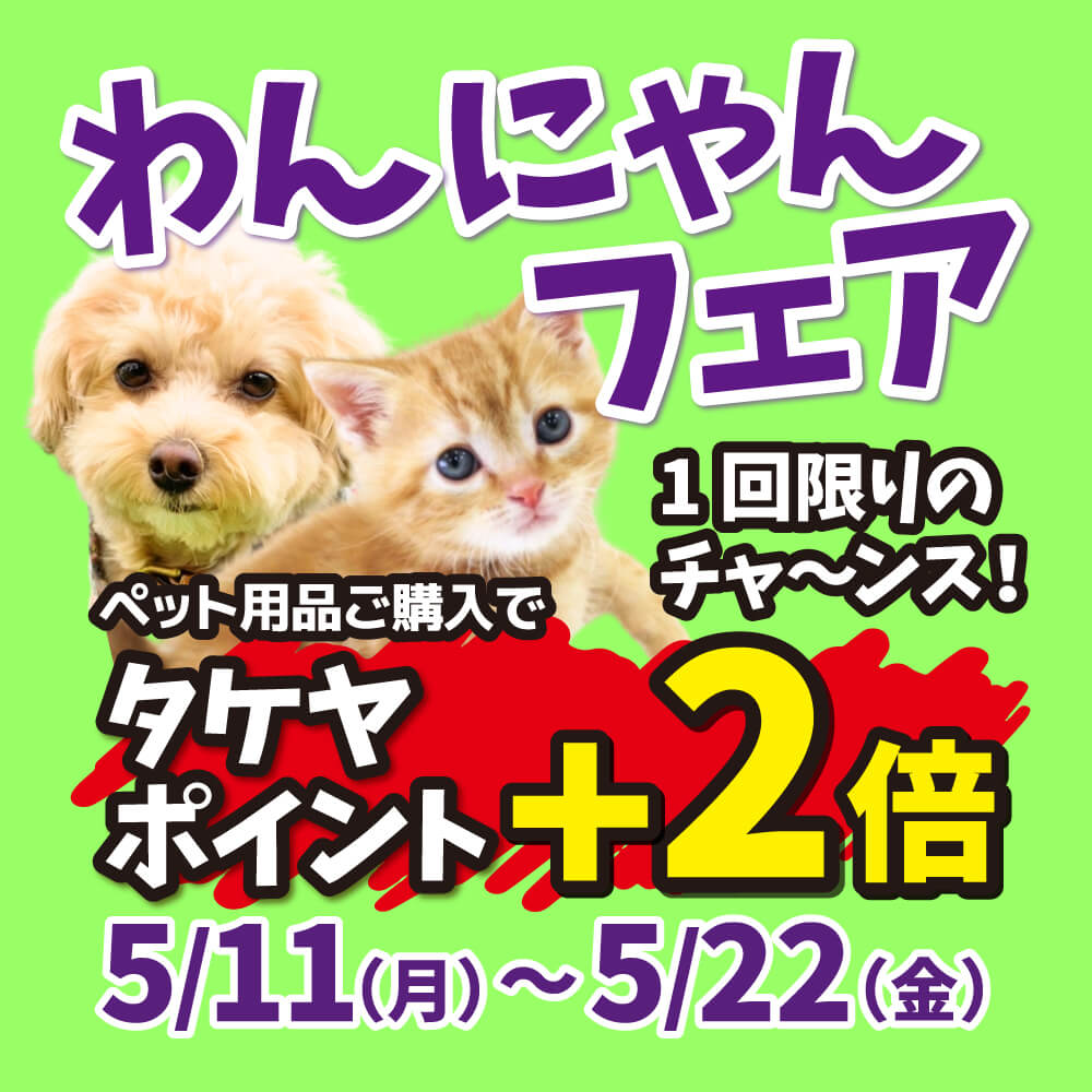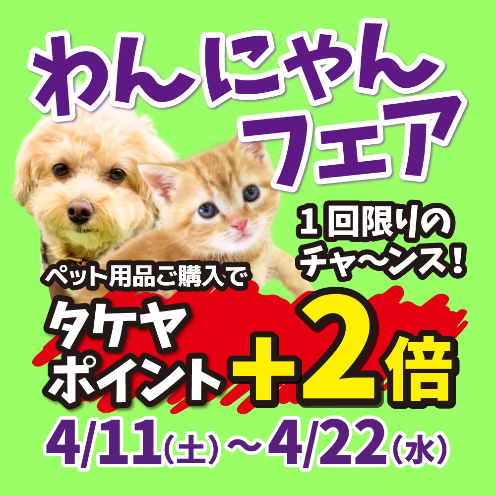 期間中にペット用品ご購入で、通常税込100円で1ポイント付与のところ、プラスポイント2倍に!